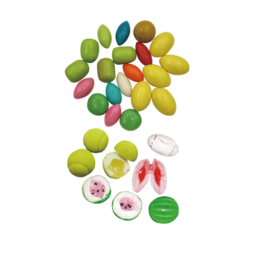 適用于各種形狀的奶糖、泡泡糖、硬糖的成形制作,可生產出如球形、草莓形、方形、橄欖形、圓柱形等空心、夾心、夾漿的糖果。